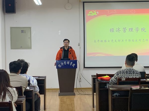 会议第三项,大会讨论接收郭尚家同志为中共预备党员。郭尚家同志从发展期内自己在思想、学习、生活等方面的进步和收获情况做了汇报,并表示将继续努力、更好地履行党员义务。全体有表决权的党员进行无记名投票,一致同意接收郭尚家同志为中共预备党员。