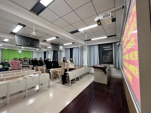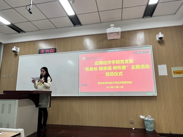 12月13日晚,应经党支部于南校区1201教室召开党支部书记讲廉洁文化教育主题党课暨“亮身份·践承诺·树形象”主题活动启动仪式,会议由郭嘉欣同志主持,支部全体党员参加。