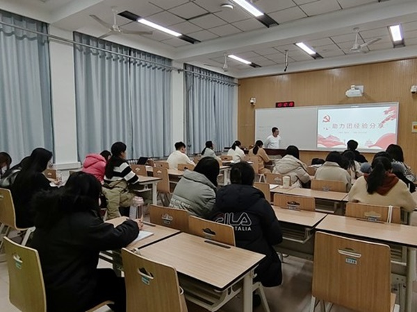 接着由姜文庆同志给大家介绍了研究生助力团的选拔条件、接收程序及工作要求,并向大家分享了在助力团服务期间为广大人民群众办实事的活动经历,让大家感受到了其在认真践行全心全意为人民服务的宗旨,并学习到作为一名优秀的共产党员不仅仅要严格要求自己,更要深入群众,倾听群众的心声,帮助群众解决实际困难,鼓励大家共同成长与进步。