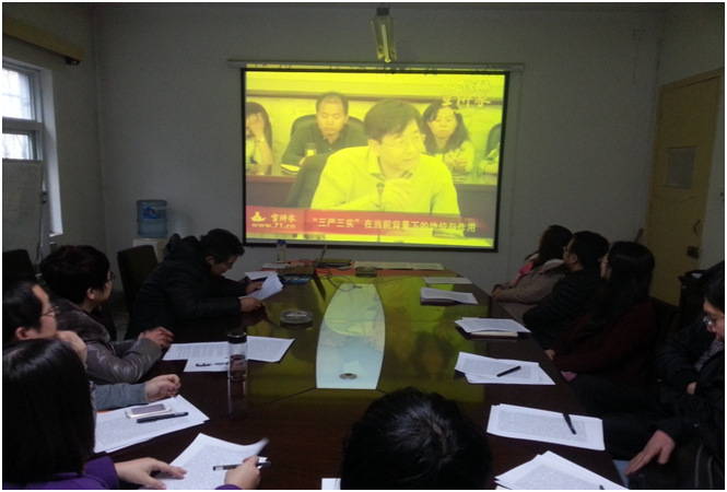 1月6日下午,教工第三党支部全体党员召开了新一年的第一次组织生活会。此次组织生活会包括三个内容:第一是“三严三实”学习;第二是解读中央经济工作会议精神;第三是讨论2016年支部工作。