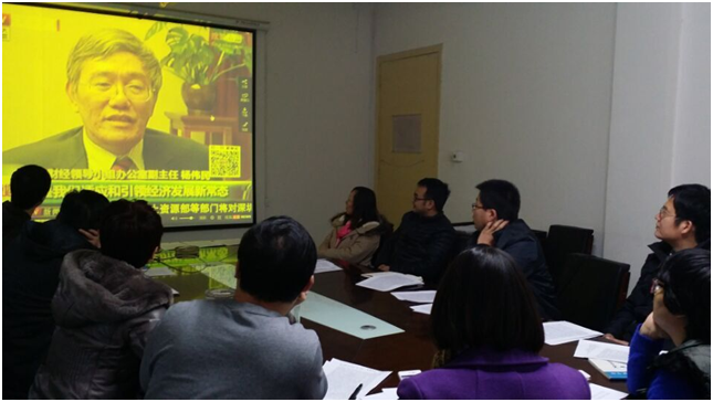 其次,全体党员观看了2015年中国经济工作会议精神的解读视频,主讲人是中央财经领导小组办公室副主任杨伟民。杨伟民从供给侧的结构性改革入手,从为什么、是什么、做什么、怎么做四个层面对此予以解读。2016年的改革主要是五大任务,叫“三去一降一补”,即去产能、去库存、防风险、降成本、补短板。