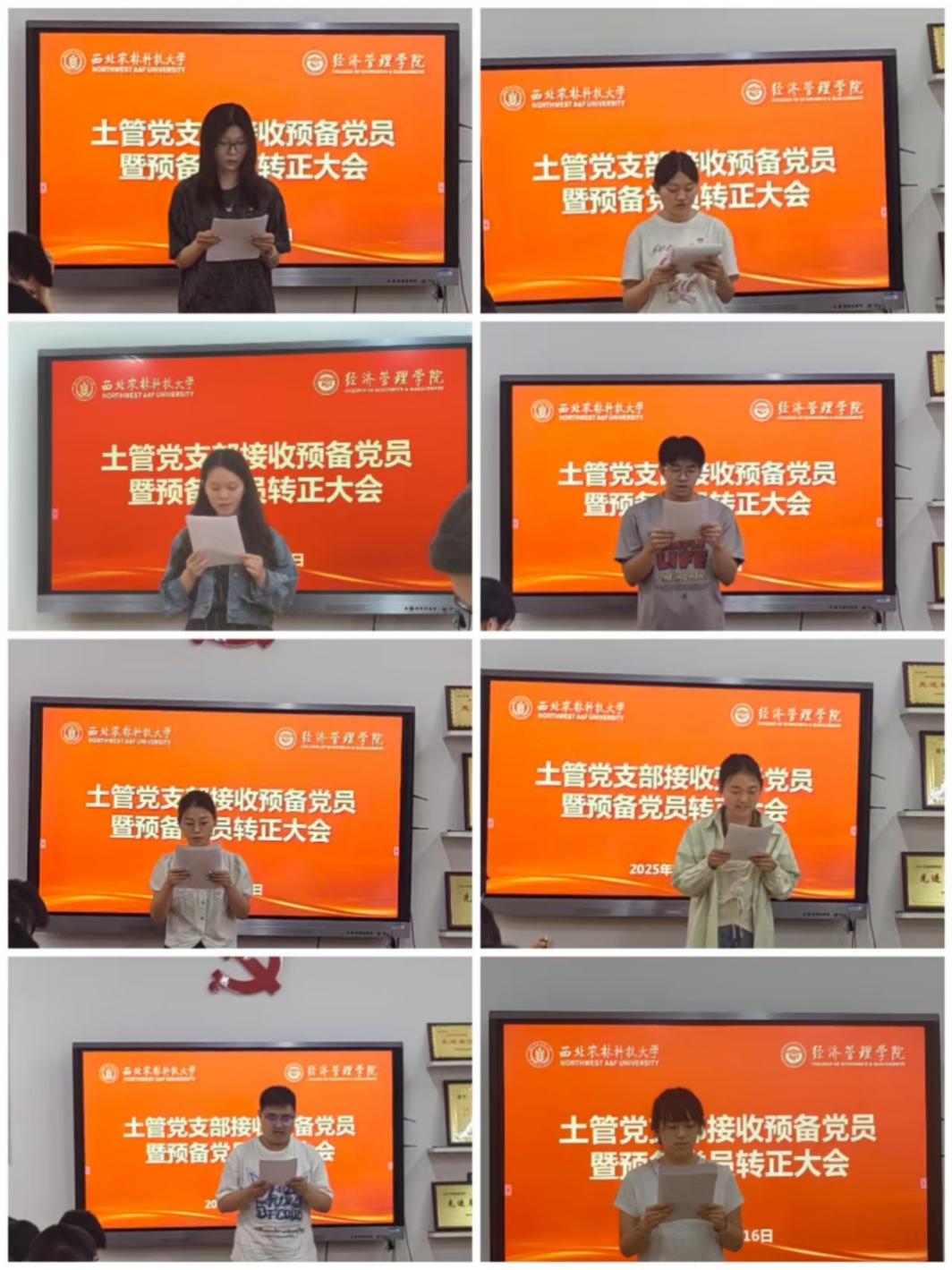 王文夕等8名预备党员分别就自己入党以来的思想、学习、工作和志愿服务等情况向大会进行汇报。与会党员对他们在预备期内的表现予以评价并指出不足。8位同志表示会接受建议,努力改正自身不足,不断加强政治理论学习,提高政治素养与工作能力。随后,经与会有表决权的正式党员无记名投票,大会一致同意王文夕等8位预备党员转为中共正式党员。