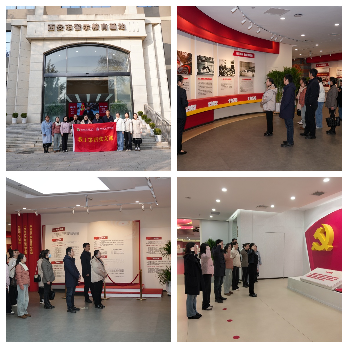 活动首站走进位于西安文理公司高新校区的西安市警示教育基地,“你是党员吗?你还记得自己的入党誓词吗?你知道党的纪律是铁打的吗?”三个 "扪心自问"直击人心,全体党员带着这些问题跟随基地讲解员的引导,依次参观了不忘初心、铁打党纪、警钟长鸣、榜样力量等九大展区,展区通过文字说明、图片展示、案例剖析、情景模拟等多种形式,系统呈现了近年来查处的各类违纪违法典型案例。党员同志们认真聆听讲解,不时驻足沉思,深刻认识到腐败行为对党的事业、人民利益和个人家庭的严重危害,进一步增强了对“清廉是福、贪欲是祸”的理解。参观最后环节,党员同志们面向党旗,在党委书记石颖贤同志领誓下,一起重温入党誓词,警示全体党员牢记初心使命,严守纪律底线,永葆共产党员的政治本色。